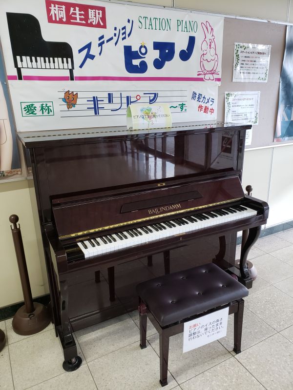 改札を出ると細長い空間、高崎駅と比べると小規模な駅です。ベンチには前橋商業の甲子園出場の表示や、駅ピアノがありました。