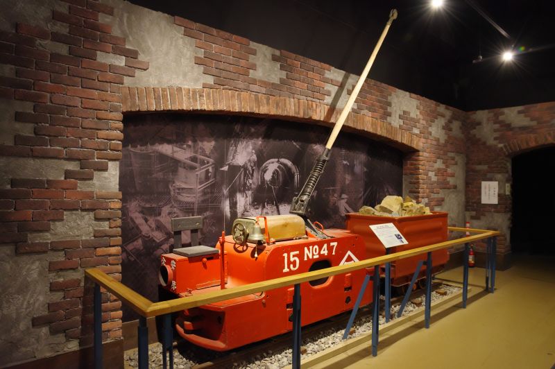 解説のビデオ、鉱石、製錬所の模型、トロッコ車両など様々な展示があります。